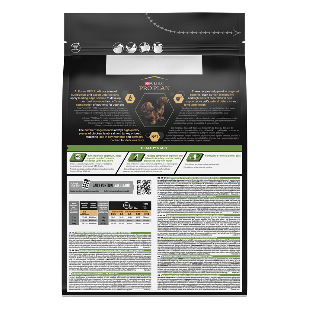 Deze formule bevat Optistart, een combinatie van ingrediënten met onder anderen colostrum, een voedingsstof welke aanwezig is in de eerste moedermelk en helpt de natuurlijke afweer van de puppy te versterken. Rijk aan kip van hoge kwaliteit. Deze voeding is samengesteld door Purina deskundigen voor totale tandverzorging; en om de lange termijn gezondheid en de natuurlijke weerstand te helpen ondersteunen.