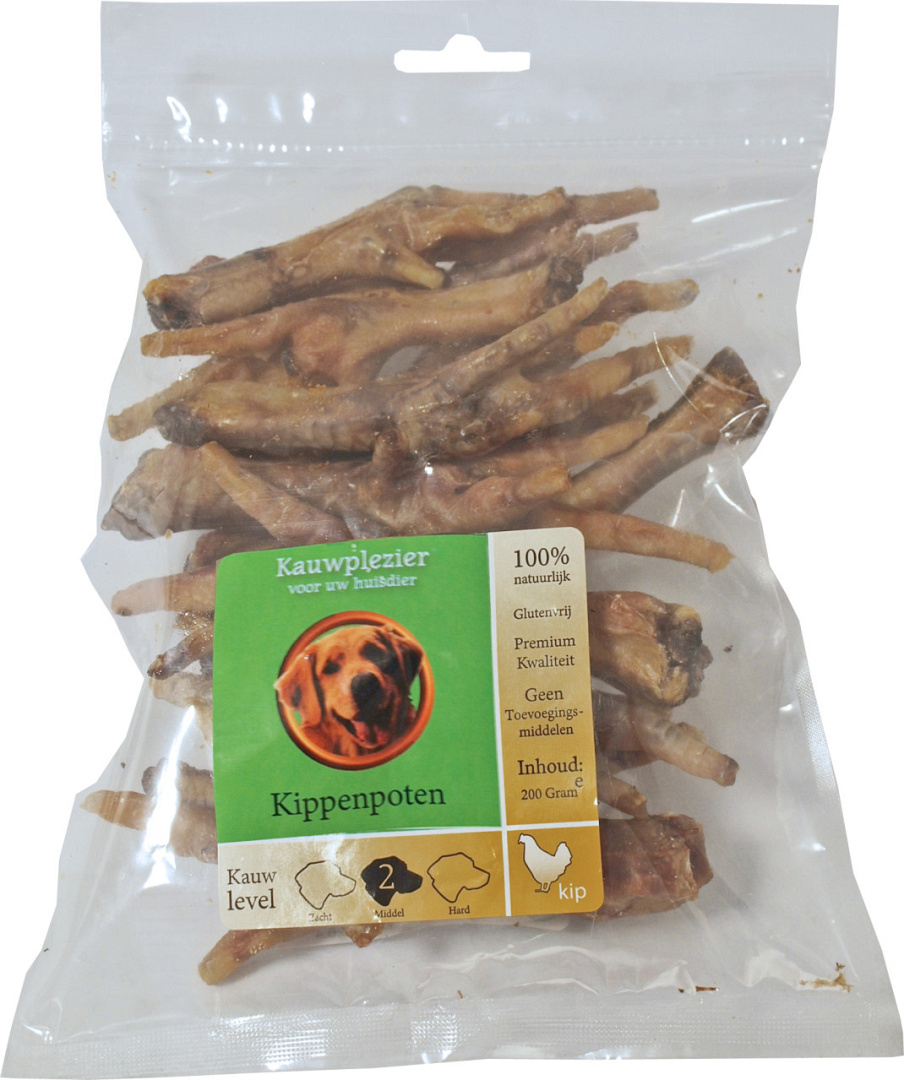 Op iedere verpakking staat een kauwlevel vermeld die de hardheid aangeeft van level 1 tot 3. Deze kippenpoten zijn kauwlevel 2 (middel) en daardoor geschikt voor honden met een gemiddelde kauwkracht.
