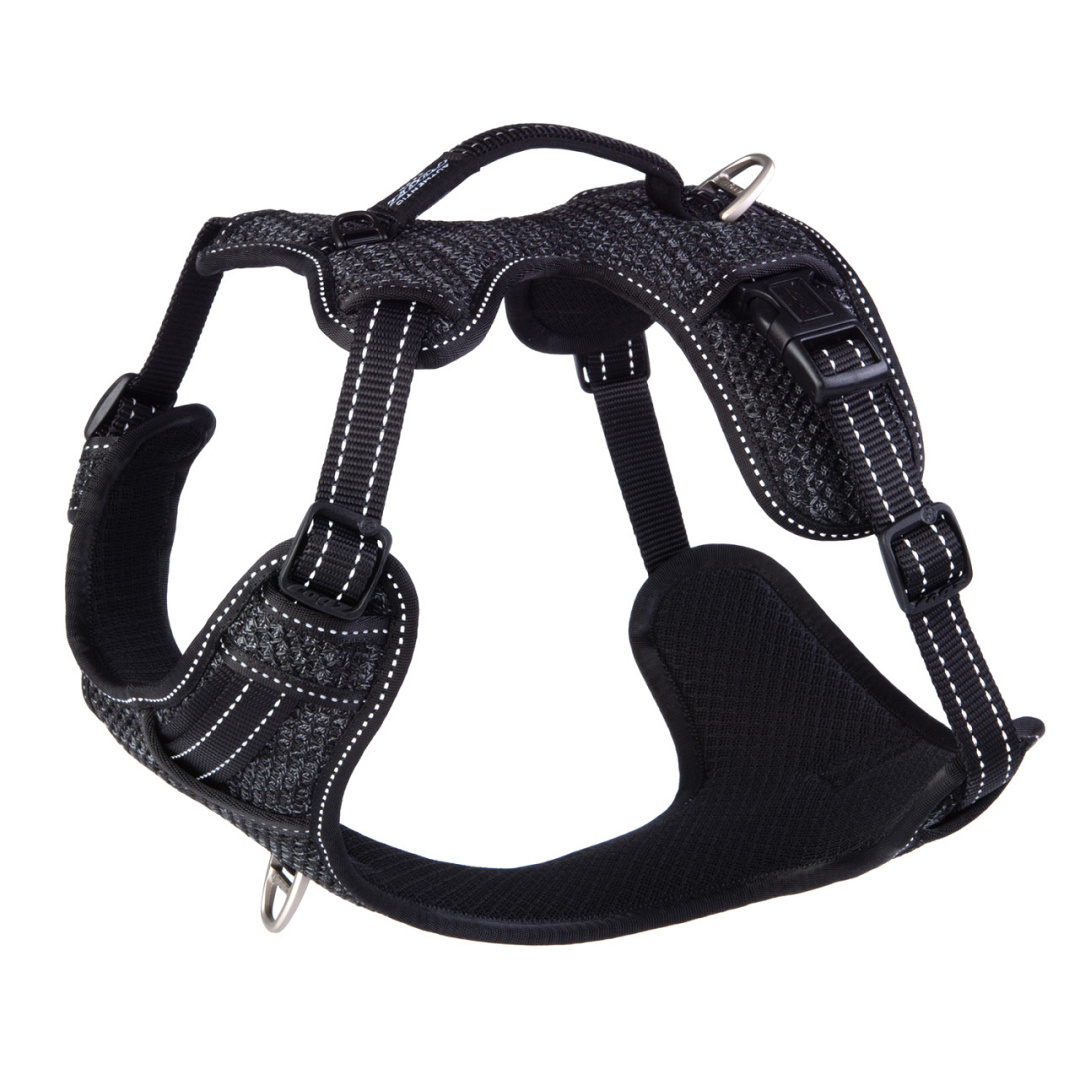 • Op de rugplaat zit een support handvat waarmee u de hond makkelijk ondersteuning kunt bieden bij het nemen van obstakels.