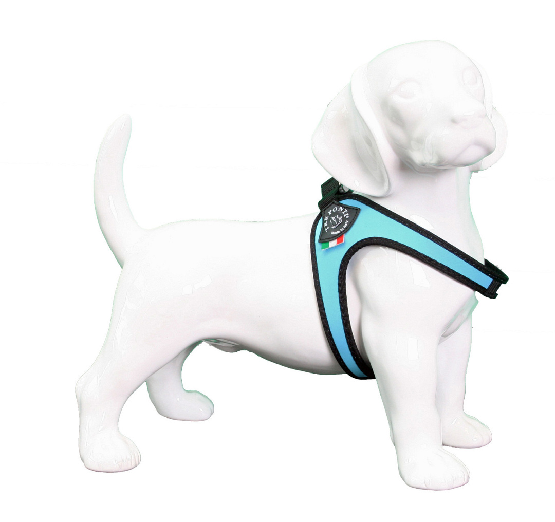 Deze Basic Fibbia tuigen zijn gemaakt van een niet allergisch, vederlicht en duurzaam materiaal. De kern is gevuld met een laag canvas, geen enkele rek dus en oersterk! Het materiaal wordt niet tot nauwelijks nat en houdt geen hondenharen vast. Tre Ponti Fibbia tuigen zijn allen gebaseerd vanuit het idee om de hond een zo optimaal mogelijke bewegingsvrijheid te verlenen tijdens het gebruik van de tuigen, zonder enige druk, wrijving bij de oksels en vorm van obstructie van de bewegende delen van de hond. Deze tuigjes duwen nergens op negatieve drukpunten en ontzien hierdoor ook honden met rug- en gewrichtsproblemen.