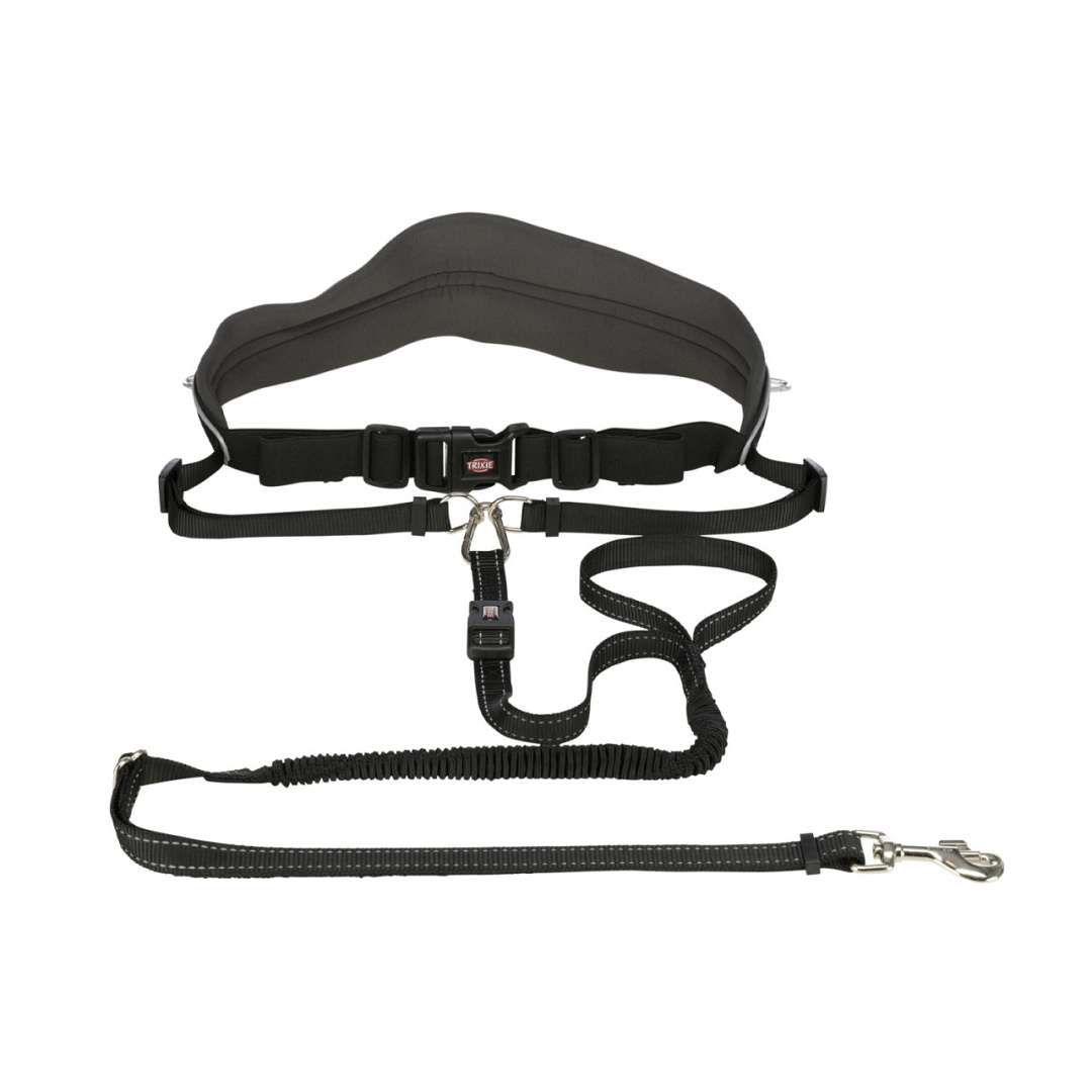 • aanlijnsysteem: verdeelt de impact van het trekken van de hond gelijkmatig over de taille van de loper