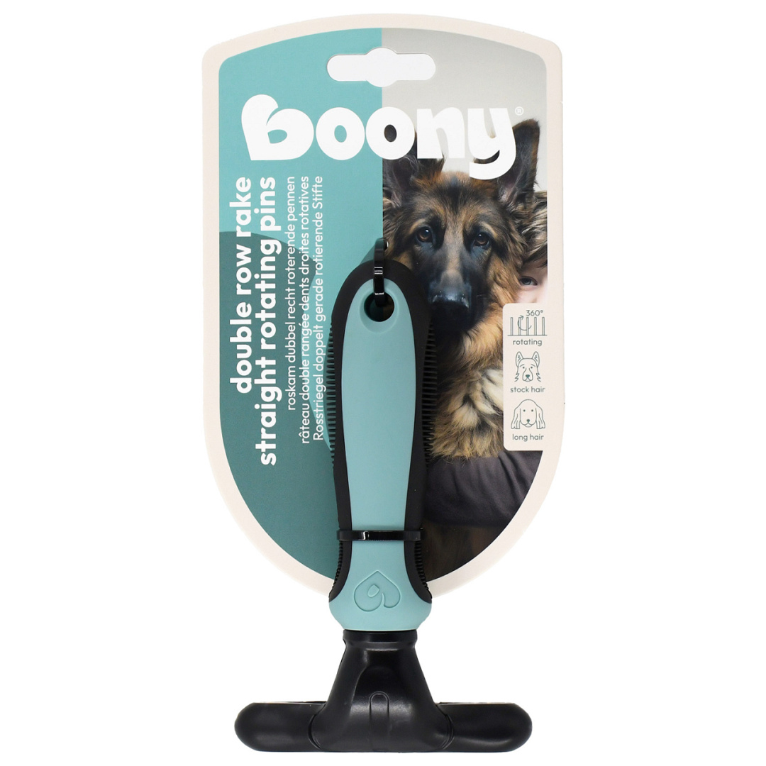De combinatie van een dubbele rij en roterende pennen zorgt voor een krachtige maar soepele doorkambaarheid. De pennen bewegen mee tijdens het kammen, waardoor er minder weerstand ontstaat en je gemakkelijker door klitten en ondervacht komt. Dit vermindert trek aan de haren en helpt huidirritatie voorkomen.