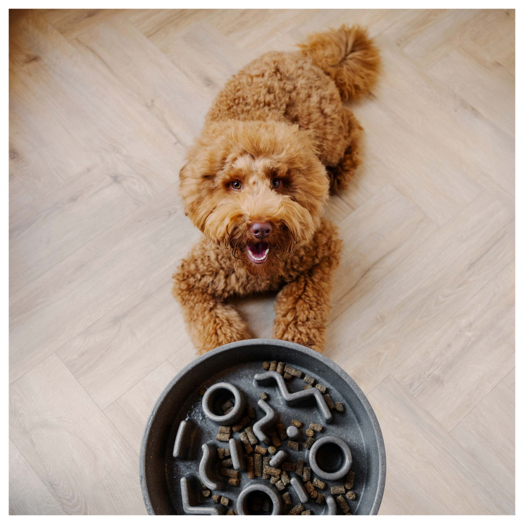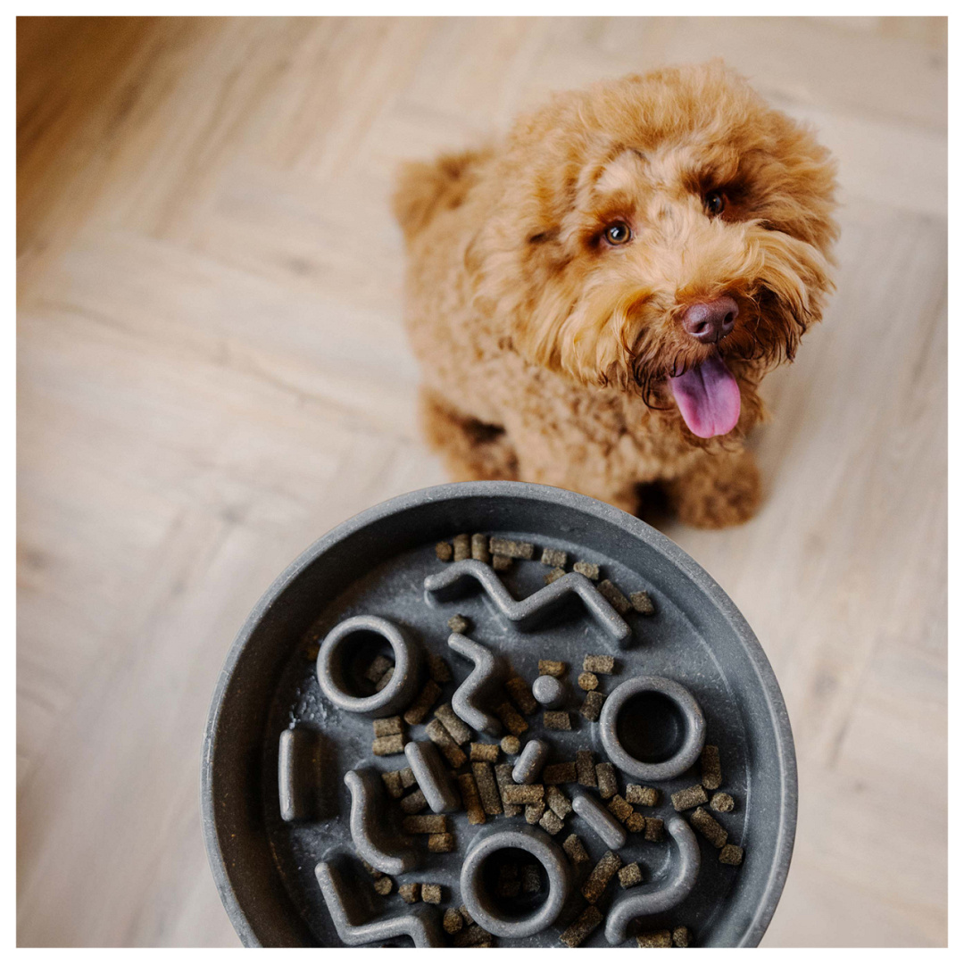 Met behulp van de obstakels in het midden van de Anti-schrokvoerbak, zal jouw hond meer moeite moeten doen om zijn brokken of natvoer op te eten. Door het langzamer eten zal jouw hond minder schrokken en sneller een voller gevoel krijgen, wat tevens zorgt ook voor een betere (spijs)vertering. De voerbak heeft een antislip bodem waardoor deze goed op zijn plek blijft staan tijdens het eten.