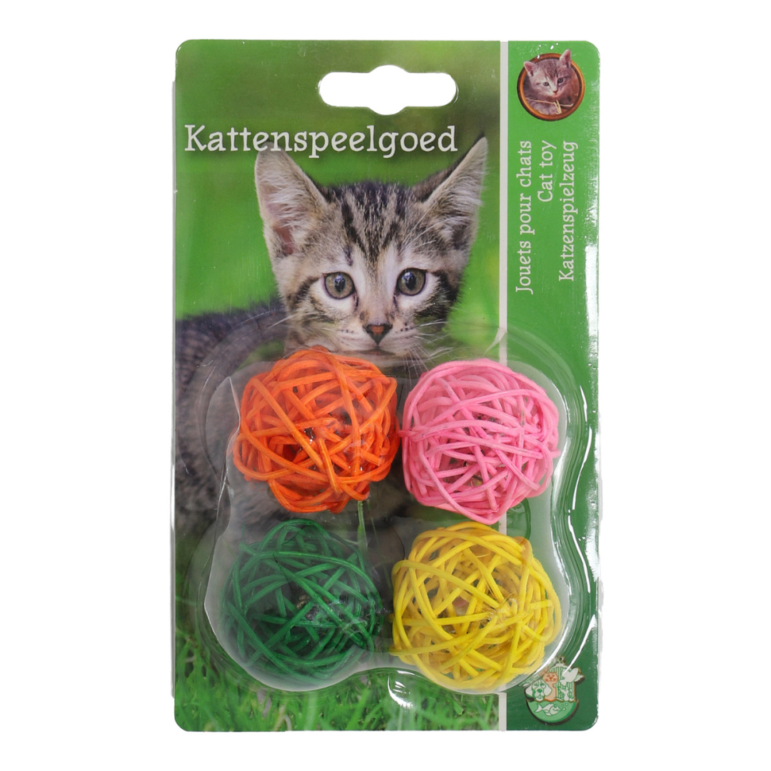 Kattenspeelgoed Rotanbal met Bel Assorti 4 st