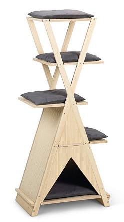 Onder dit meubel, gemaakt van onbewerkt hout, bevindt zich een klein kattenhuisje, waar jouw kat na het spelen lekker kan uitrusten. Het meubel voorziet ook in de krabbehoefte van jouw kat. De wanden van het krabmeubel zijn namelijk voorzien van stevig sisal touw.